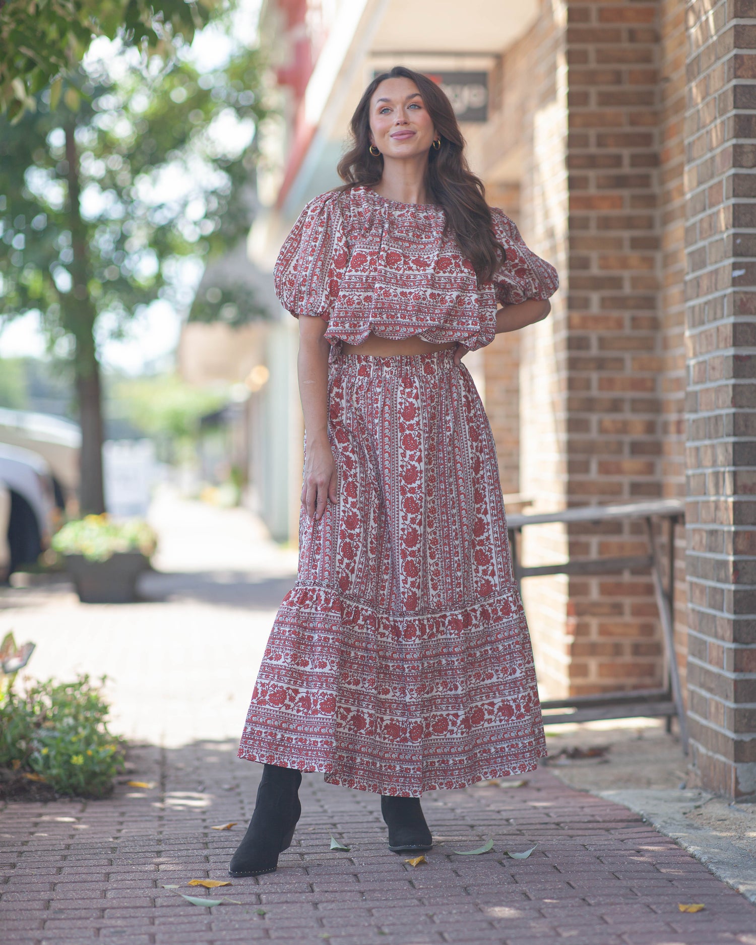 Clara Floral Midi Skirt-Red