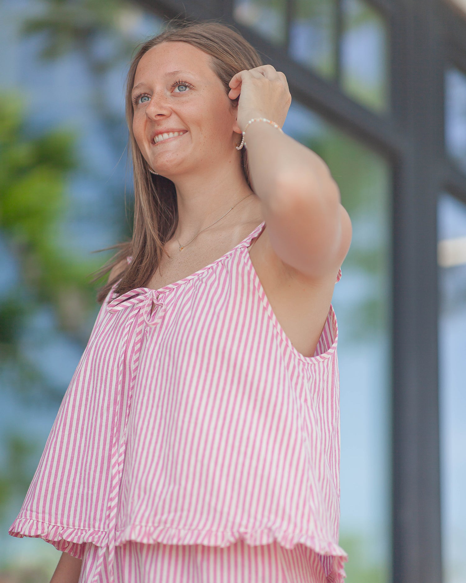 Jetset Ruffle Top-Pink Stripe